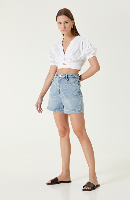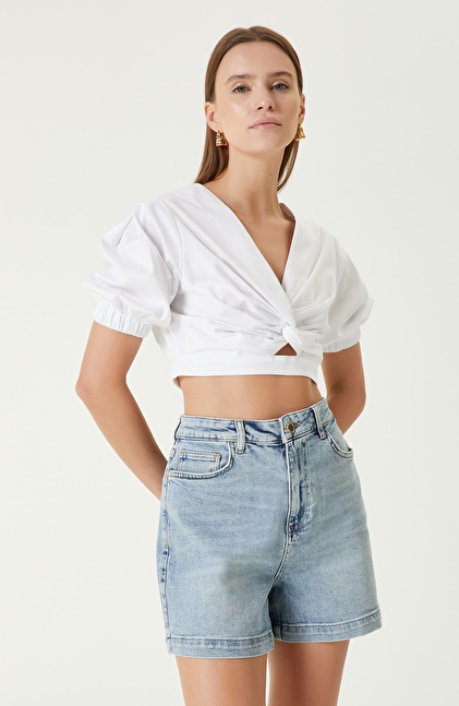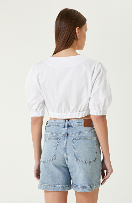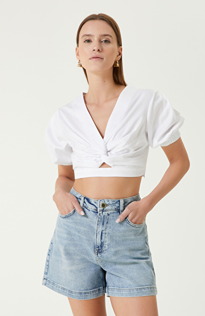 Beyaz Crop Bluz