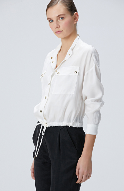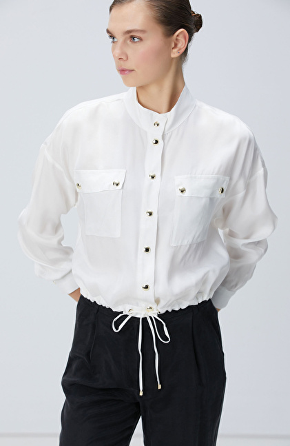 Beyaz Cupro Gömlek