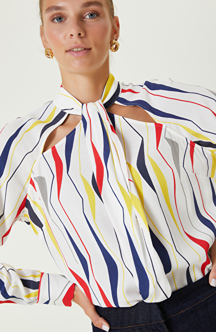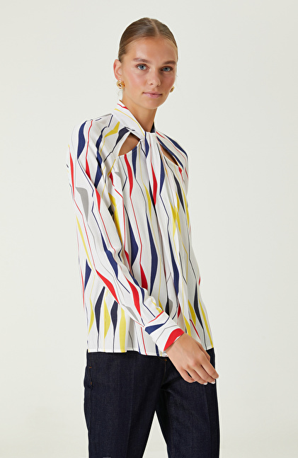 Beyaz Desenli Bluz