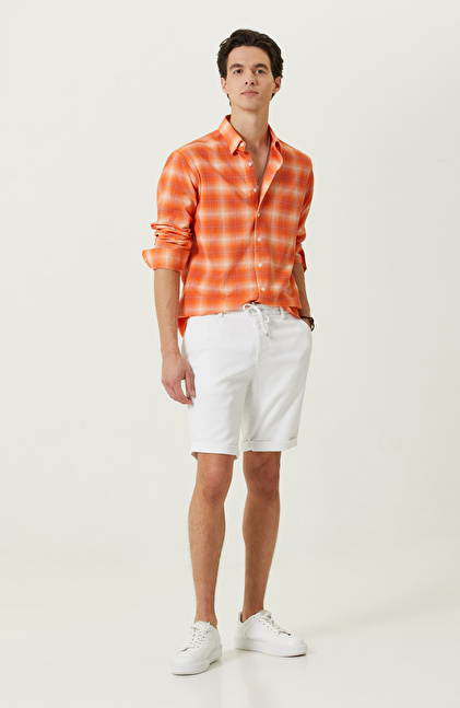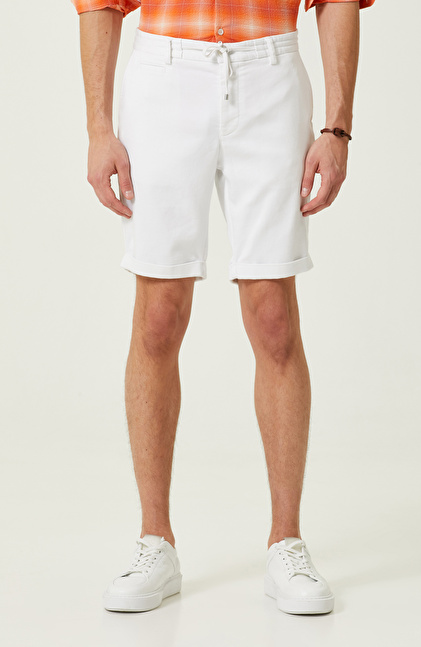 Sağlık ve spor rutini olan erkeklerin aktif yapısını yansıtacak şekilde tasarlanan Beyaz Duble Paça Şort, konfor elementleriyle şık detayları başarılı bir şekilde bir araya getirir. Bağcıklı orta beliyle konfor sunarken yan cepli tasarımıyla fonksiyonel bir kullanım kazanır. Contemporary urban stiliyle yüksek bir duruş sergiler. NetWork Casual çizgisindeki şort, günlük hayatta konforundan ödün vermeden şık bir görünüm elde etmek isteyen erkekler içindir. Şortu turuncu gibi canlı tonlara sahip ekose desenli gömleklerle kombinleyerek şehirli yapınızı yansıtabilir, beyaz spor ayakkabılarla kıyafetlerinizi eşsiz bir şekilde tamamlayabilirsiniz.