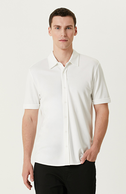 Slim Fit; Gömlek Yaka; Kısa Kol; Örme Gömlek