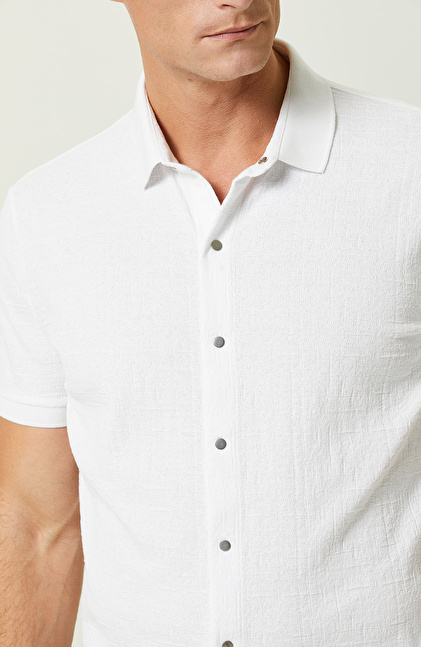Beyaz Jakarlı Polo Yaka Gömlek
