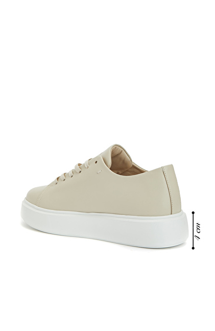Beyaz Kadın Deri Bağcıklı Sneaker