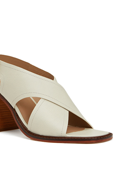 Beyaz Kadın Deri Sandalet