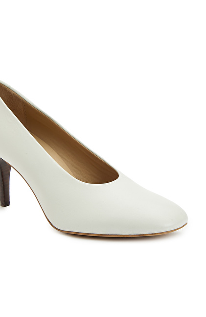 Beyaz Kadın Deri Topuklu Ayakkabı