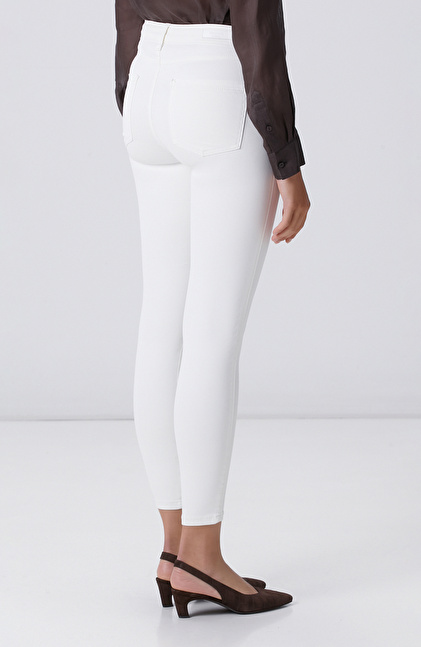 Beyaz Kaplamalı Skinny Kalıp Denim Pantolon