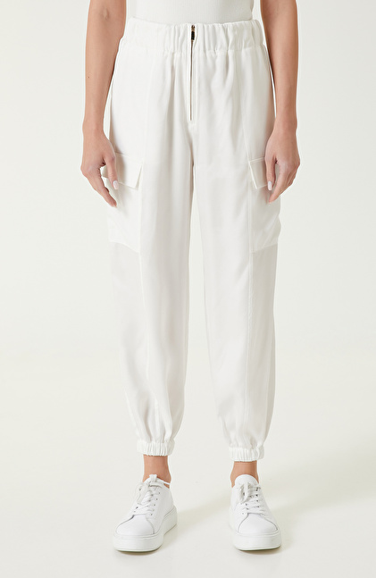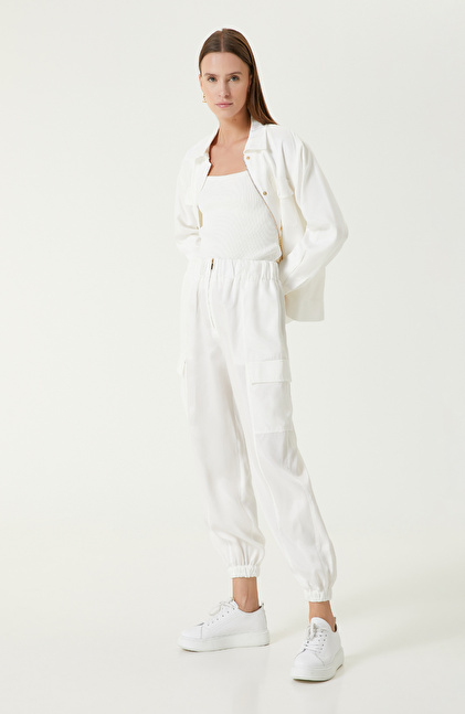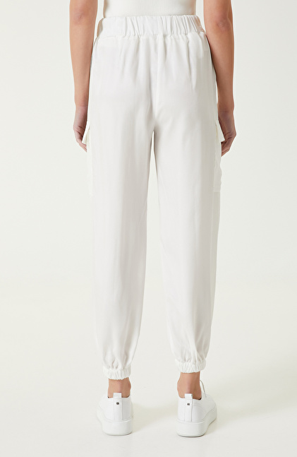 Beyaz Kargo Cepli Pantolon