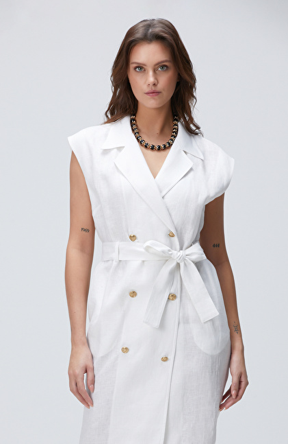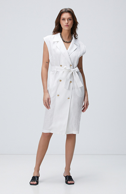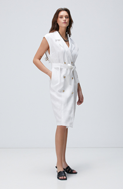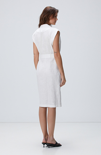 Beyaz Keten Elbise