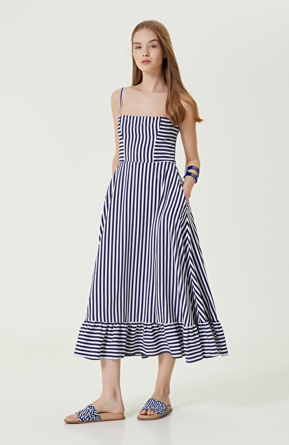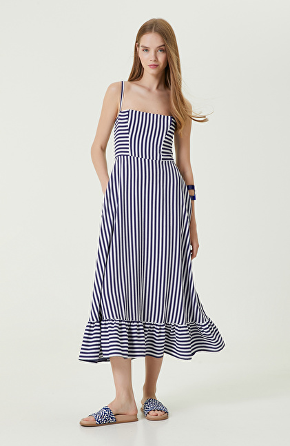 Beyaz-Lacivert Çizgili Elbise