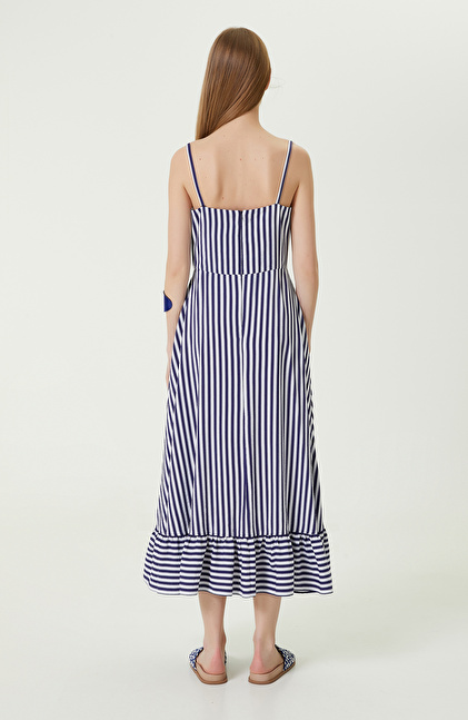 Tükenmek Üzere Beyaz-Lacivert Çizgili Elbise