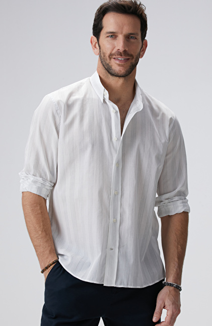 Beyaz Lacivert Çizgili Gömlek