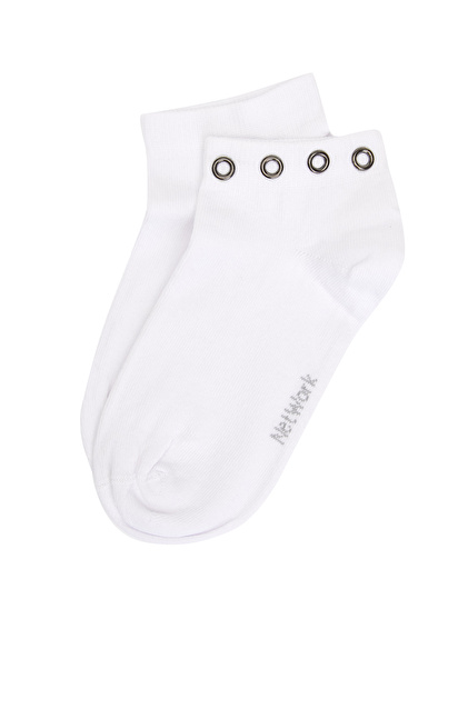 Beyaz Metal Aksesuar Detaylı Kadın Çorap
