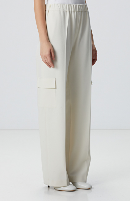Regular Fit; Yüksek Bel; Bol Paça Pantolon; Kargo Cepli