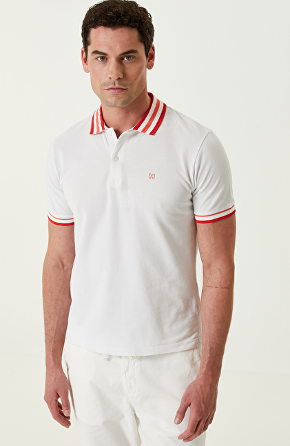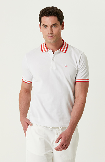 Beyaz Ribanalı Kısa Kollu Polo Yaka Tshirt
