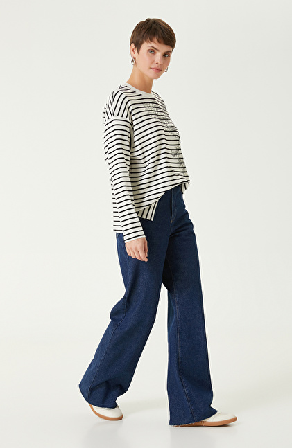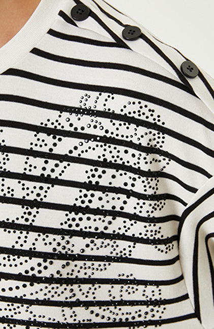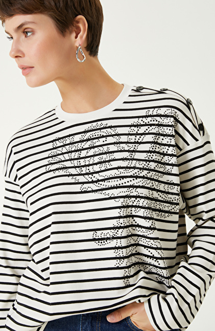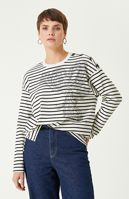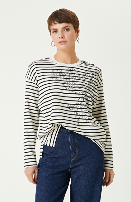 Beyaz Siyah Çizgili Uzun Kol Tshırt