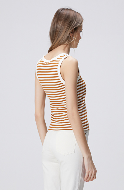 NETWORK Casual Beyaz Tütün Çizgili Örme Atlet