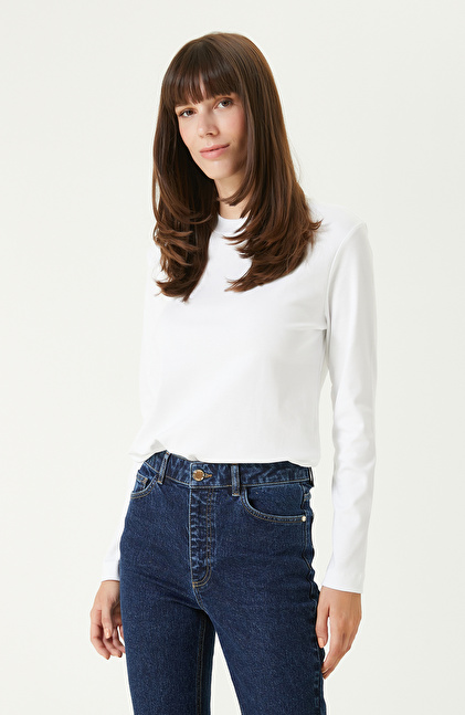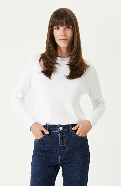 Beyaz Uzun Kol Basıc Tshırt