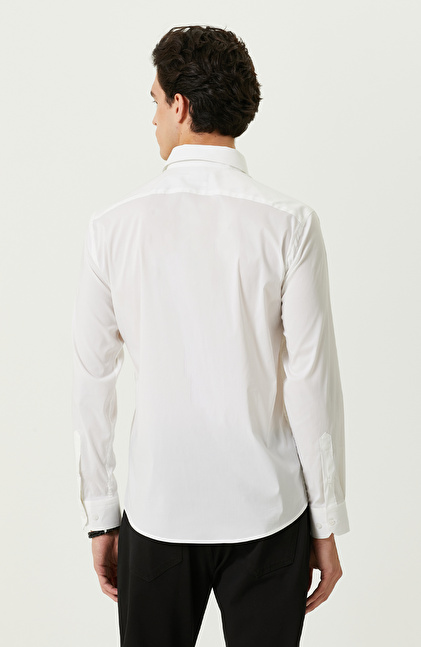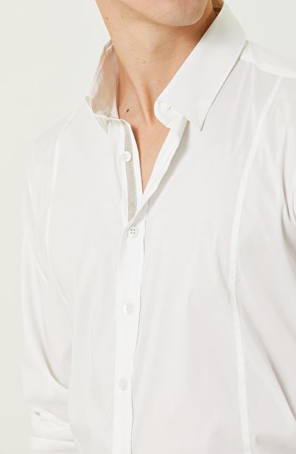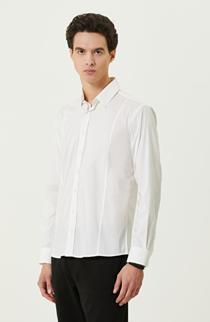 Beyaz Uzun Kollu Cepsiz Gömlek