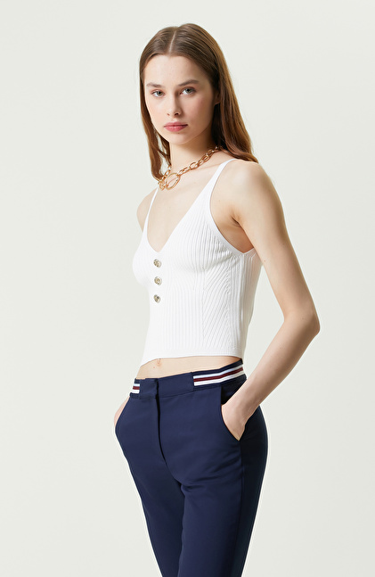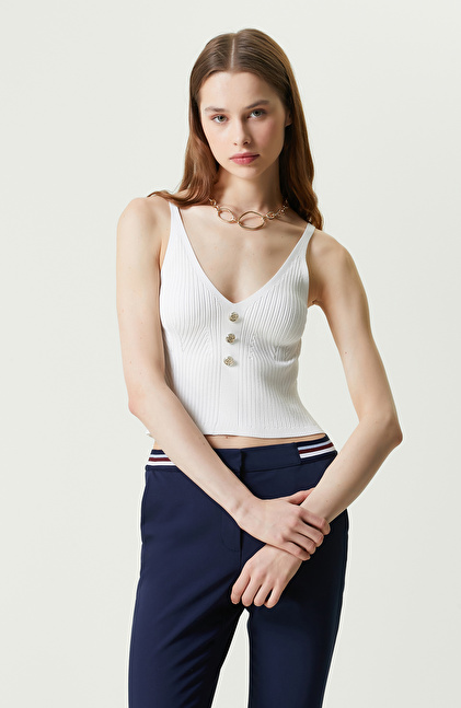 NetWork Line+Tone serisinin sade ve şık parçaları arasında bulunan Beyaz V Yaka Askılı Kazak, casual stil ve genel kullanım için idealdir. Özgüveni yüksek ve sosyal hayatta aktif kadınların ilk tercihlerinden biri olan askılı kazak, düğme detaylarıyla dikkat çeker. Yumuşak formu sayesinde konforlu hissettiren kazak, ince askılı ve oldukça hafiftir. İlkbahar/yaz aylarında günün her saati tercih edilebildiği için geceden gündüze rahatlıkla kombinlenebilir. Düğme detayları gold renkli ve NetWork logosuna sahiptir. Slim fit kalıbı ise vücudunuzu sarar ve esnekliği ile hareketlerinize uyum sağlar. Siz de askılı kazağı şık stiller için denim şort, fuşya sandalet ve gold zincirli askılı çantalarla kullanabilirsiniz.