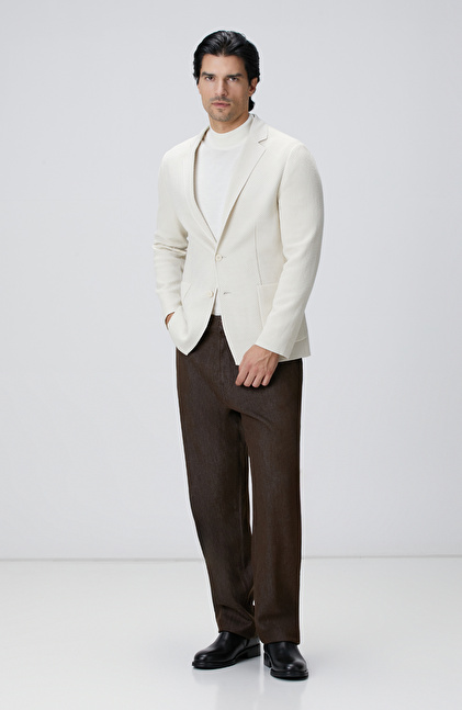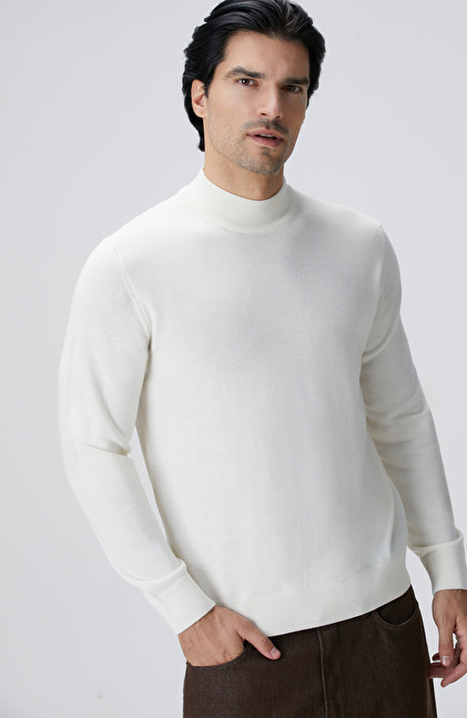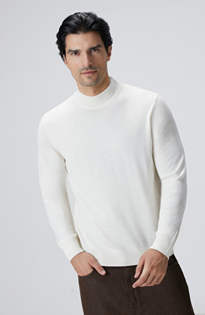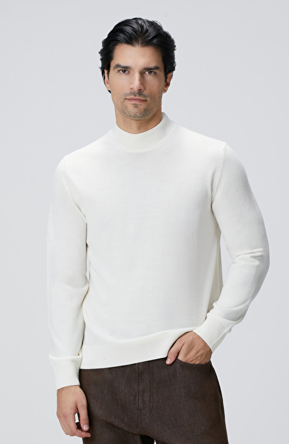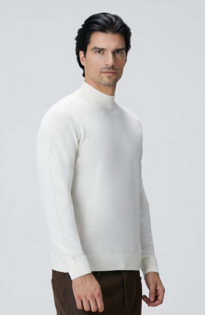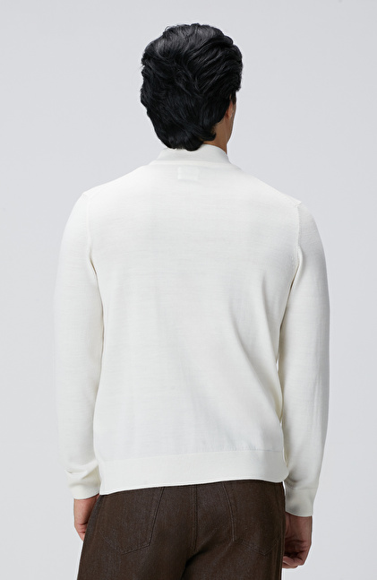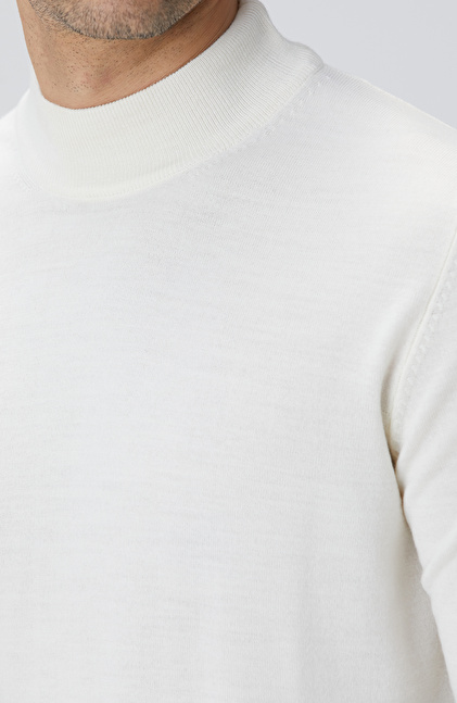 Beyaz Yün Karışımlı Kazak