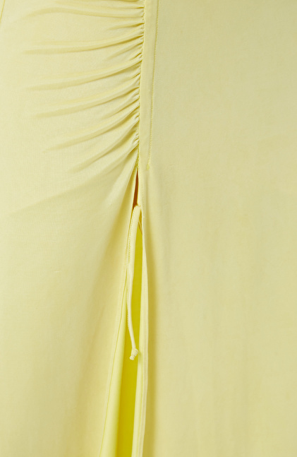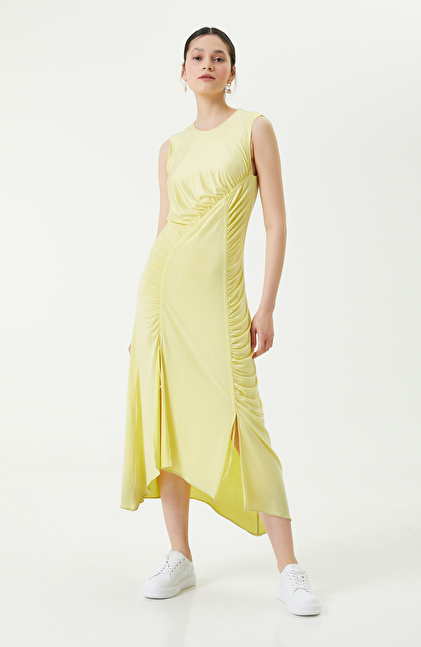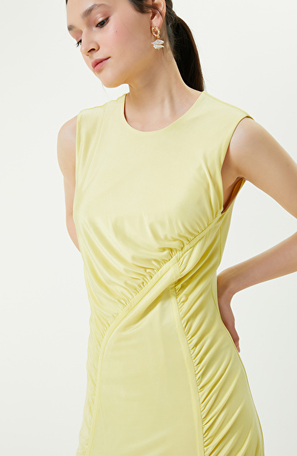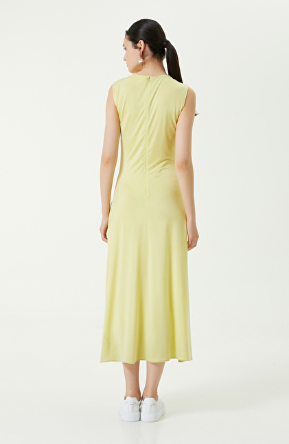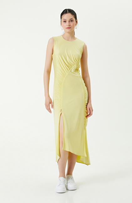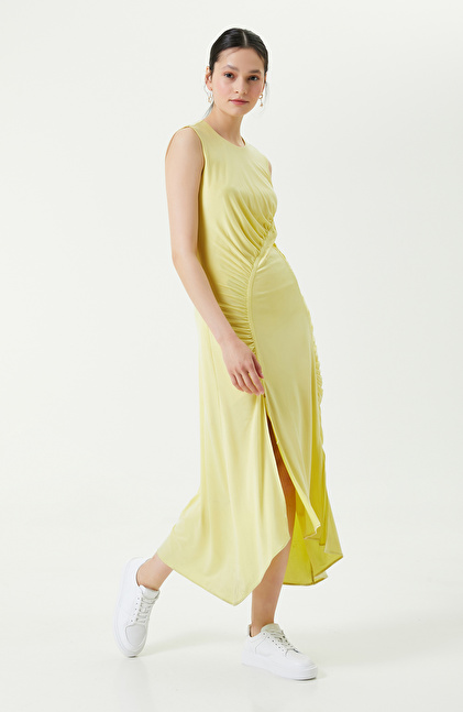 NetWork'ün her an şık giyinmeye özen gösteren kadınlar için tasarladığı Bisiklet Yaka Sarı Uzun Elbise, Warp&Weft serisinin gözde parçalarından biridir. Mükemmel smart casual kombinler oluşturmanıza yardımcı olan elbise, sarı rengi ve bisiklet yaka dizaynıyla geceden gündüze giyilebilir. Yanlarda ve göğüs bölgesinde yer alan drape detayları hareketli görünüm sağlamakla kalmaz, benzersiz stiller elde etmenize olanak tanır. Kolsuz tasarımı sayesinde sonbahar kombinlerinize de dahil edebileceğiniz sarı elbise, uzun etek boyu ve yırtmaçlarıyla gündelik ve klasik kombinlerinize rahatlıkla eşlik eder. Siz de soft sarı renkli elbiseyi; beyaz deri ceket, beyaz stiletto, altın renkli el çantası ve takılarla kombinleyebilir, kış stilinizi öne çıkarabilirsiniz.