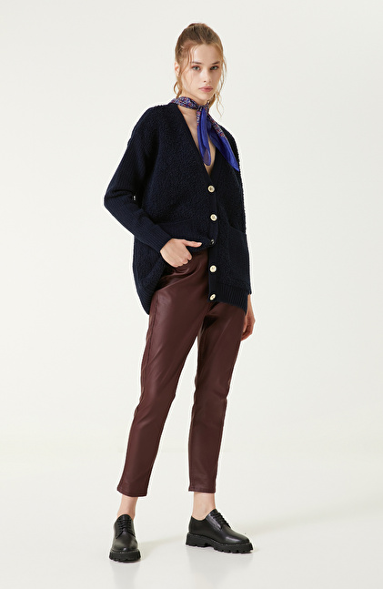 NetWork kış koleksiyonunun gözdesi olan Bordo 5 Cepli Casual Pantolon, stil sahibi kadınlara sınırsız akıllı ve şık kombin imkânı sunar. Pamuklu kumaştan kaplamalı dokuya sahip bu tasarım, her çağdaş kadının koleksiyonunda mutlaka bulunması gereken özel bir parçadır. Vücudu mükemmel şekillendiren skinny fit silüet, kış kombinlerine inkar edilemez bir cazibe katar. Dar paça pantolonun normal bel kesimi, rahatlık ve kolaylık sunar. 5 cepli tasarım ise smart casual kombinler için pratik ve çok yönlüdür. Siz de bordo pantolonu; siyah oversize triko ceket, loafer ve şal ile kusursuz ve iddialı bir şekilde kombinleyebilirsiniz.