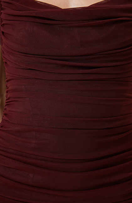 Stiline önem veren kadınlara hitap eden Bordo Askılı Abiye Elbise, NetWork Smart Casual’ın sevilen parçalarından biri olarak öne çıkar. Tek renk basic elbise, büzgü detayları ile hareketlendirilmiş olup tül kumaşıyla elegan bir görünüm sunar. Özel gecelerde ve davetlerde sofistike stilinizi yansıtmanızı sağlayacak zamansız moda anlayışına uygun özgün bir tasarımı vardır. Şık tasarımını uzun süre koruyacak kaliteli kumaşı aynı zamanda gün boyu rahat etmeniz için de idealdir ve yaz sezonuna uygun bir parçadır. Bordo rengi ile siyah stiletto ve gold aksesuarlarla kombinleyerek özel gecelerde feminen ve iddialı bir stil elde edebilirsiniz.