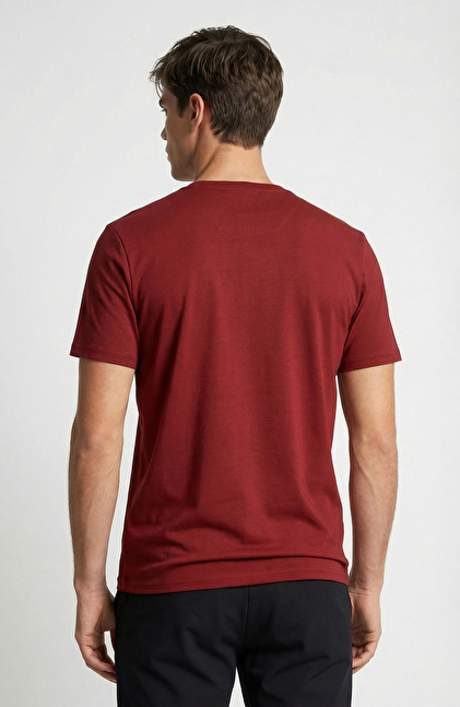 Bordo Bisiklet Yaka Pike Desen Basic T-shirt