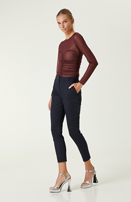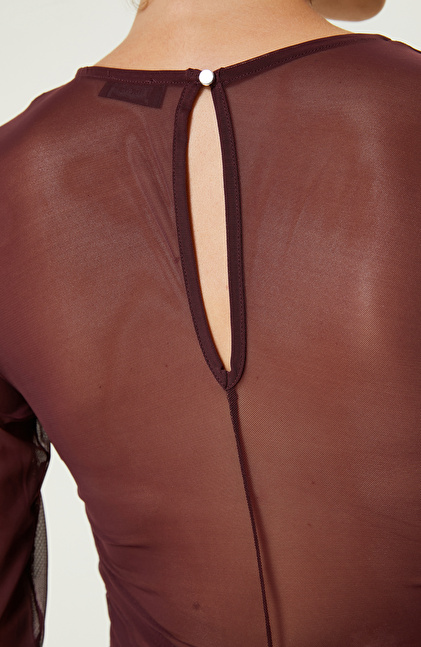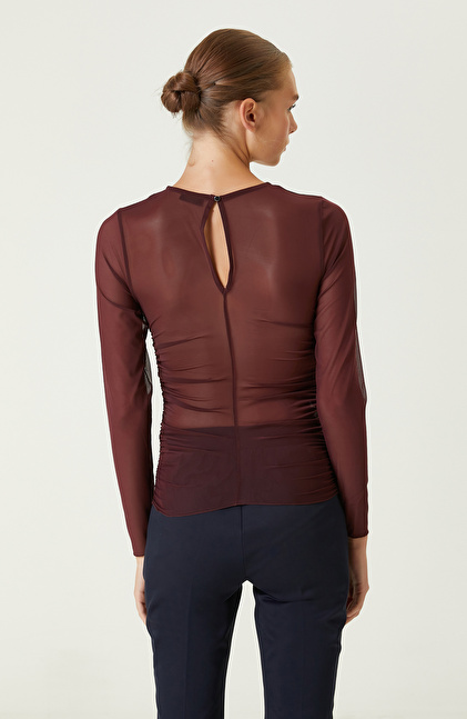 Feminen tarzı benimseyen kadınlara hitap eden Bordo Büzgü Detaylı Tül Tshirt, NetWork Smart Casual kış koleksiyonunda yer alan iddialı bir parçadır. Konfor ile lüks moda anlayışını bir araya getirerek, kombinlerinize modern şıklık kazandırır. Kaliteli kumaşı ile kombinlerinizi öne çıkarır, dayanıklıdır ve gün boyu rahat etmenizi sağlar. Tül kumaşa sahip olduğundan cesur kombinler oluşturabilirsiniz. Özel günlerde olduğu gibi günlük stilinizde de sofistike bir şıklık elde etmek için kullanabilirsiniz. Bordo tül tshirt ile yüksek bel kumaş pantolon, topuklu stiletto bot ve kürk kombini yaparak özel günlere uygun zarif bir görünüm yaratabilirsiniz.