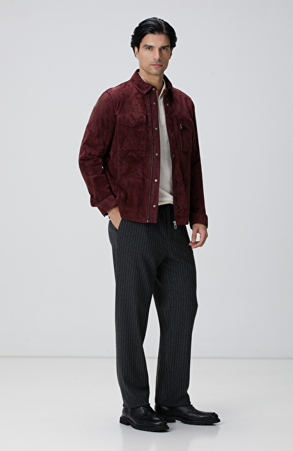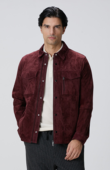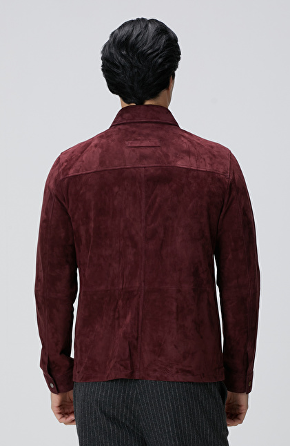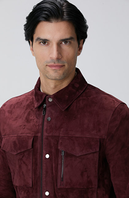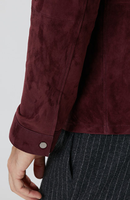 Bordo Çift Cep Detaylı Süet Deri Mont