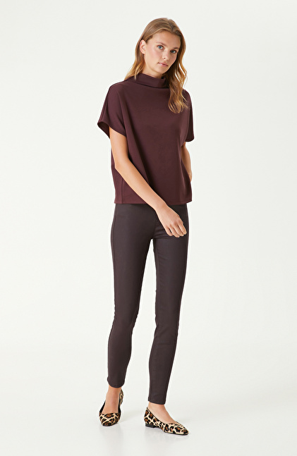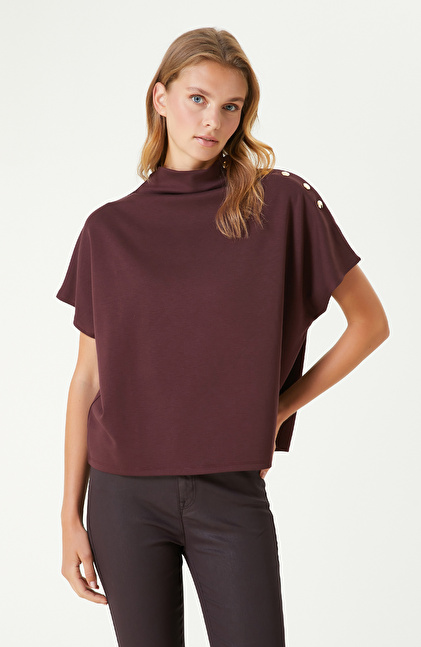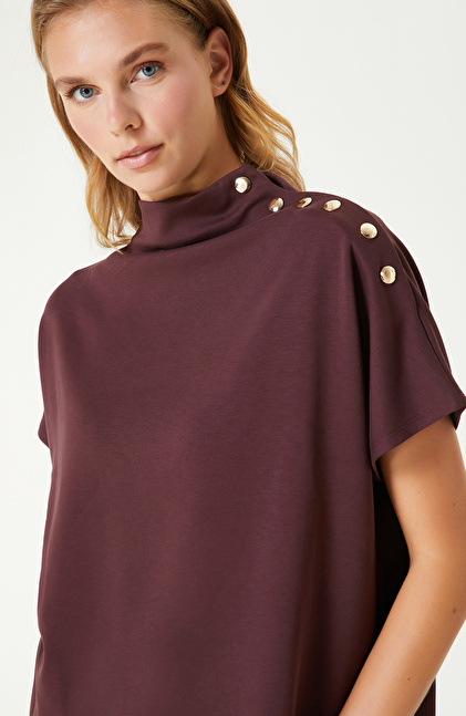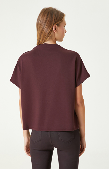 Bordo Çıtçıt Detaylı Tshırt