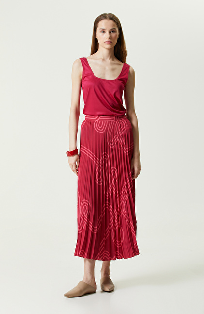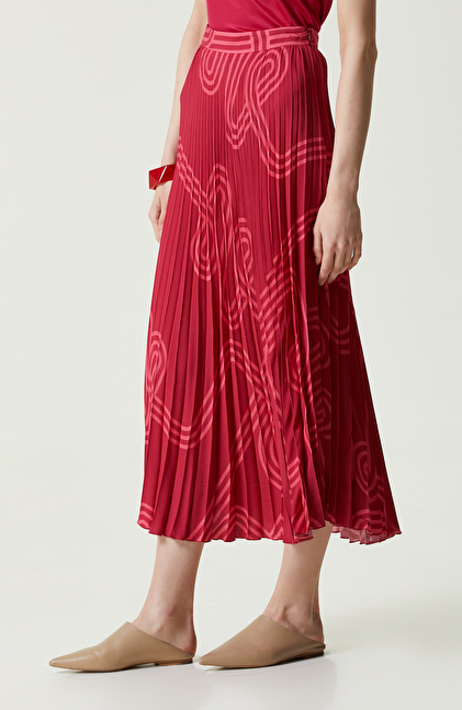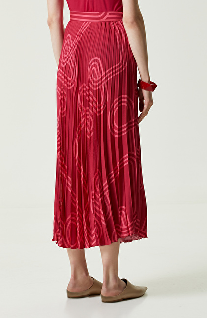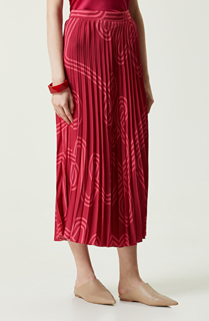 Bordo Desenli Piliseli Etek