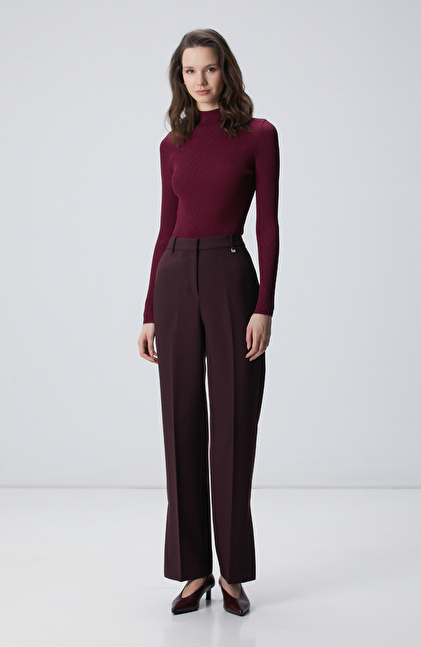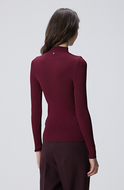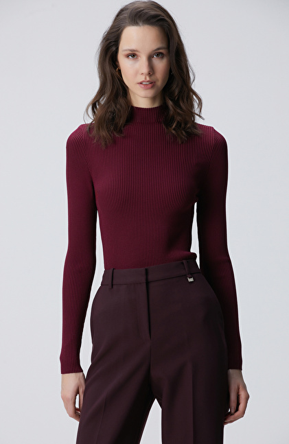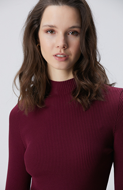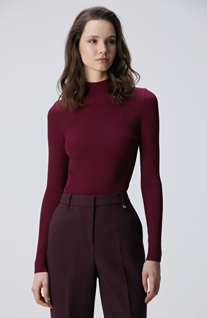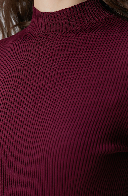 Bordo İnce Ribana Örgü Kazak