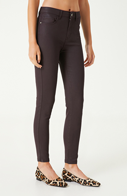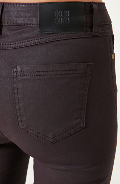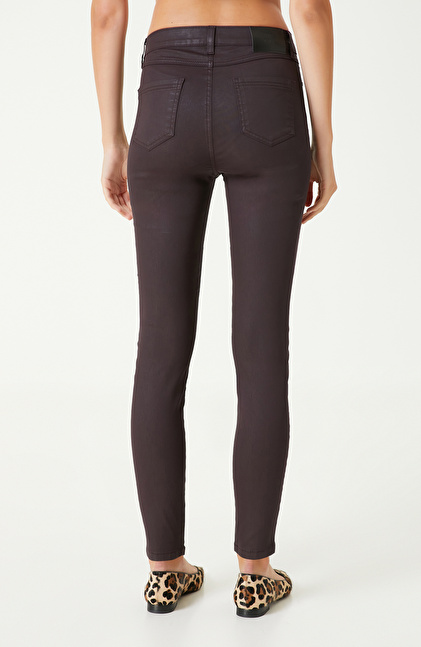 Bordo Kaplamalı Skinny Kalıp Denim Pantolon
