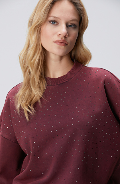 Bordo Taşlı Sweatshirt