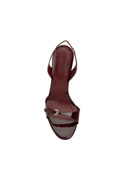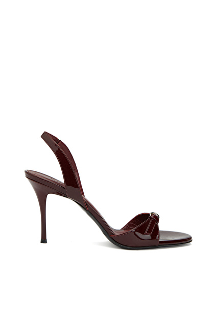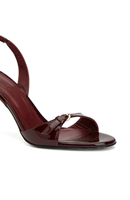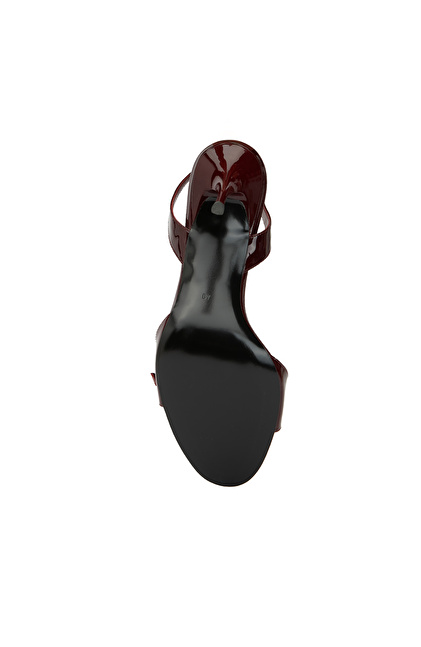 Bordo Toka Detaylı Kadın Deri Parlak Sandalet