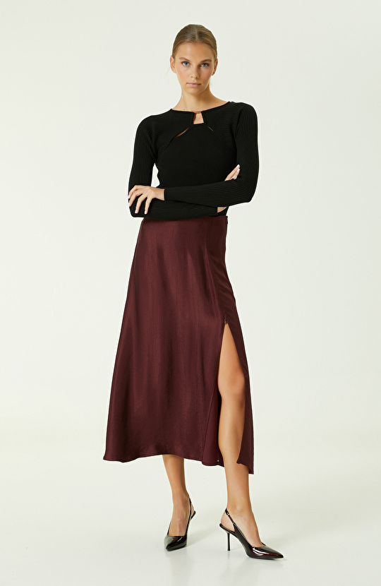 Feminen ve iddialı kadınların vazgeçilmezi olan Bordo Uzun Etek, NetWork’ün özgün ve lüks moda çizgisini tam olarak yansıtır. NetWork Smart Casual koleksiyonunda yer alan etek, gün boyu rahat etmeniz için ideal tasarıma sahiptir. Kaliteli kumaşlarla tasarlanan bu model, sonbahar/kış sezonunda kullanıma uygundur. Dayanıklı yapısı ile uzun süreli kullanım imkanı sunan parça, elegan görünümüyle de tarzınızı bir üst seviyeye taşır. Yırtmaçlı tasarımı ve bu yırtmacın fermuarlı oluşu, hem cesur bir görünüm hem de fonksiyonel kullanım imkanı sunar. Siz de bu şık eteği; siyah triko kazak, siyah stiletto ve gold aksesuarlar ile kombinleyebilirsiniz.