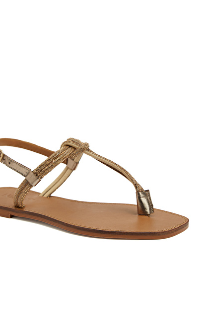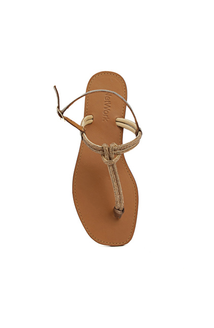 Bronz Kadın Deri Sandalet