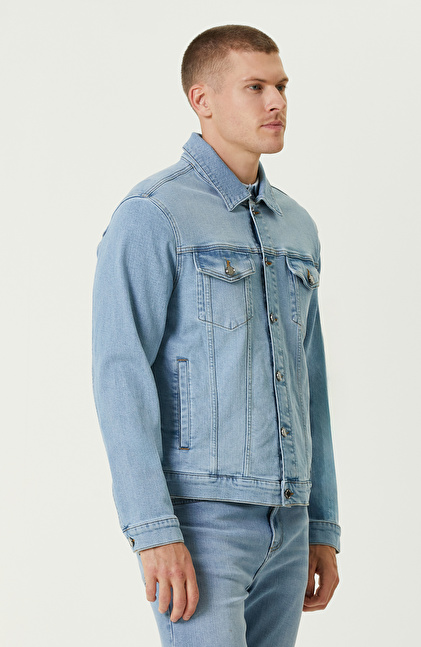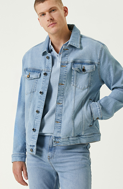 Comfort Fit; Gömlek Yaka; Jakarlı; Denim Mont