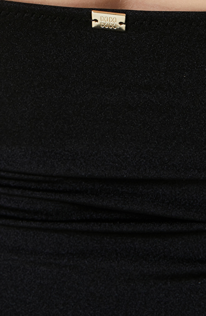 Büzgü Detaylı Dekolteli Siyah Mayo