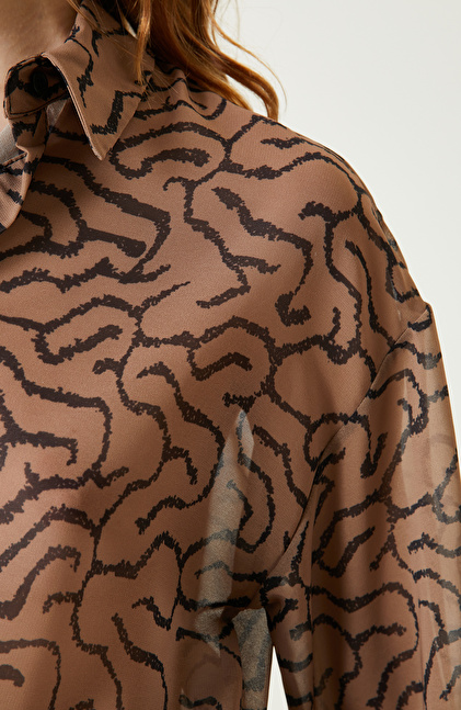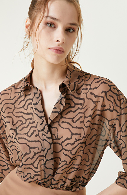 Camel Beli Büzgülü Şifon Gömlek