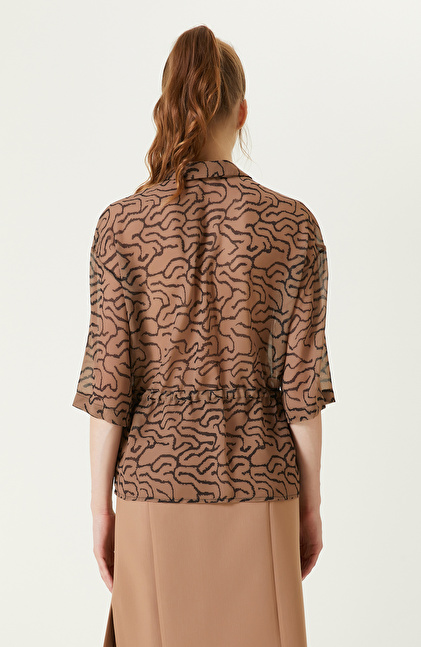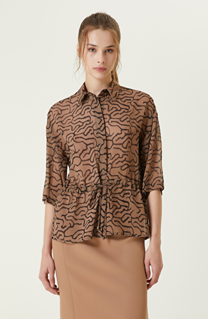 NETWORK Camel Beli Büzgülü Şifon Gömlek