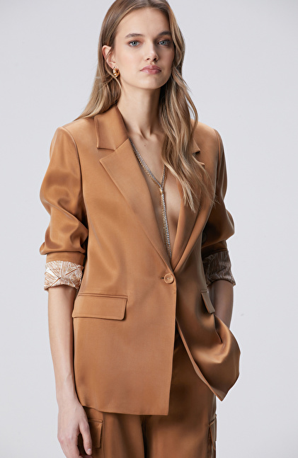 Camel Cupro Blazer Ceket