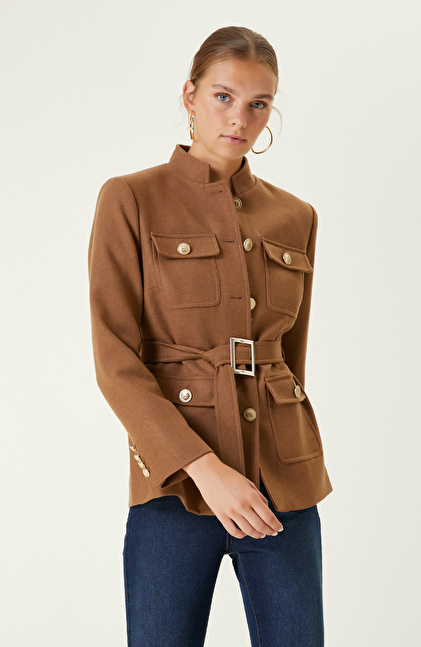 Kış aylarında kullanabileceğiniz Camel Dik Yaka Kemerli Ceket, yünlü kumaşı ile sizi sıcak tutar ve kaliteli görünümü ile üzerinizde kusursuz duruş sergiler. NetWork Smart Casual koleksiyonunda yer alan ceket, özgün stile sahip modern kadınlara hitap eder. Konforlu ve lüks yapıyı bir araya getirerek gün boyu hareket özgürlüğü sunar ve şık kombinler yapmanızı sağlar. Camel rengin sofistike görünümü ile kombinlerinize elagan bir dokunuş yapar. Kapaklı cepleri ve belindeki kemer detayı ile işlevsel kullanım imkanı verir. Düğmelerinde ise ikonik NetWork logosu bulunur. Camel ceket ile lacivert dar pantolon, camel süet bot, bordo askılı çanta kombini yapabilirsiniz.