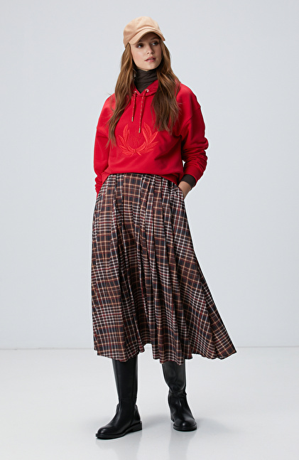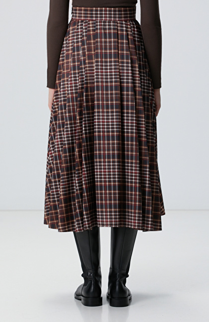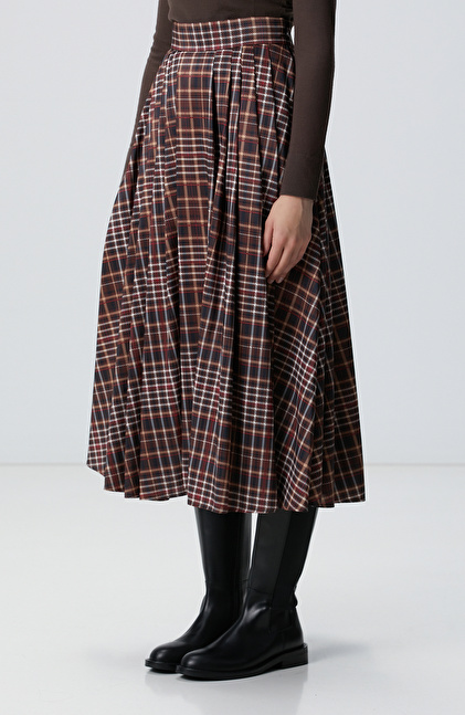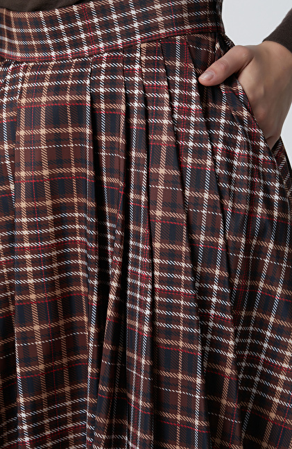 Camel Ekose Desenli Piliseli Midi Tafta Etek