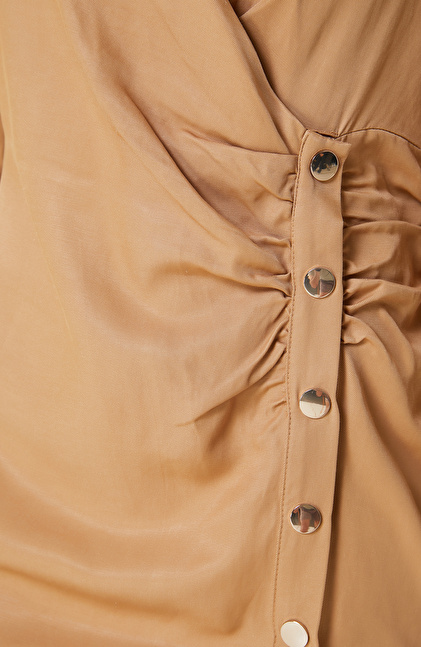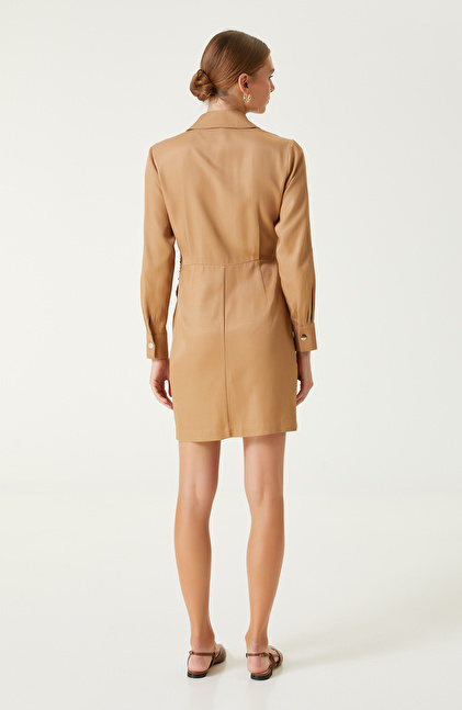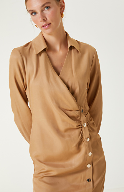 Regular Fit; Kruvaze Yaka; Uzun Kol; Mini Boy; Dokuma Elbise; Kruvaze Çıtçıt Detaylı
