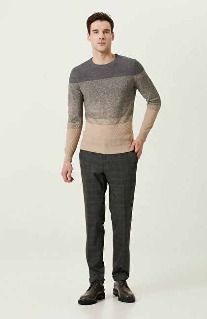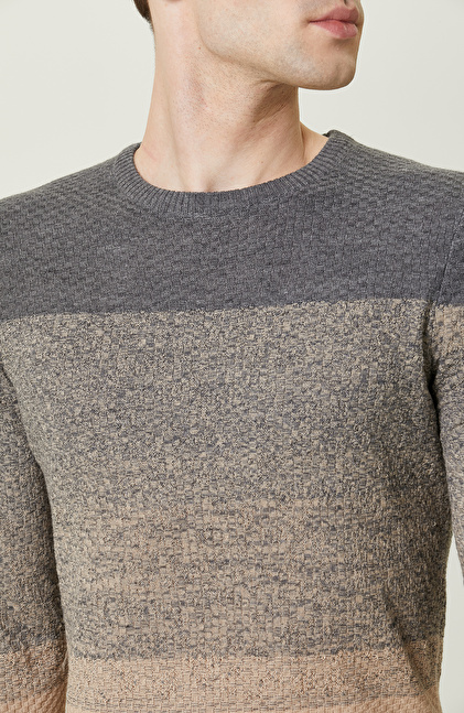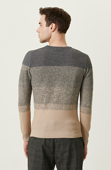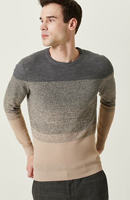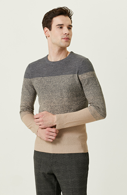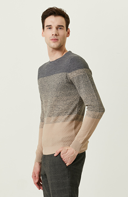 Bisiklet Yaka; Uzun Kollu; Slim Fit; Blok Detaylı; Triko