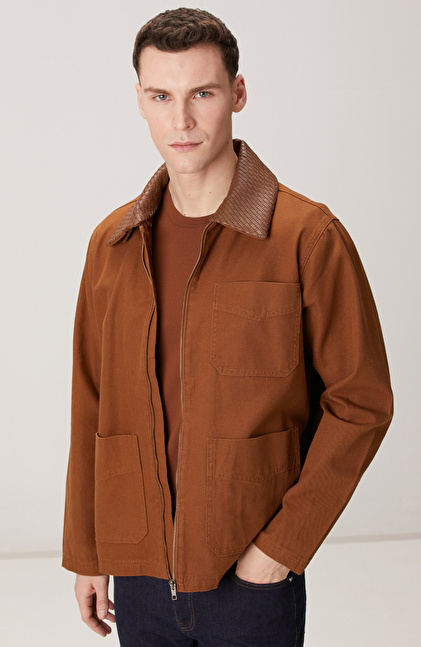 Camel Süet Detaylı Denim Ceket