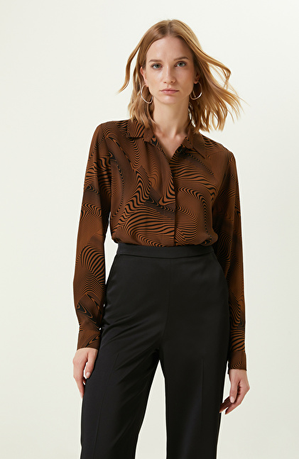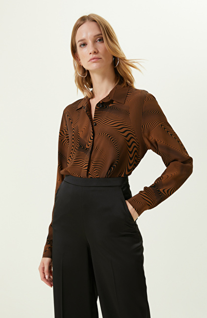 Feminen stile sahip NetWork kadınlarının beğenisini kazanan Camel Uzun Kollu Gömlek, gün boyu elegan bir tarz sağlar. Ofis ortamında ve özel günlerde de kullanabileceğiniz bir tasarıma sahiptir. Hareketli desenleri ile sofistike bir görünüm sunar ve lüks moda çizgisini yansıtır. Eşsiz asarım ile konforu bir araya getirerek farklı kombinlerinizde kullanabilmenizi ve gün boyu rahat etmenizi sağlar. Hem şıklığını uzun süre koruyabilir hem de ekstra konfor sunar. NetWork Smart Casual koleksiyonunda bulunan bu gömlek, klasik kombinleriniz için uygundur. Günlük ve ofis şıklığına uygun görünüm için bu gömleği, siyah yüksek bel kumaş pantolon, topuklu bot ve deri kol çantasıyla kombinleyebilirsiniz.
