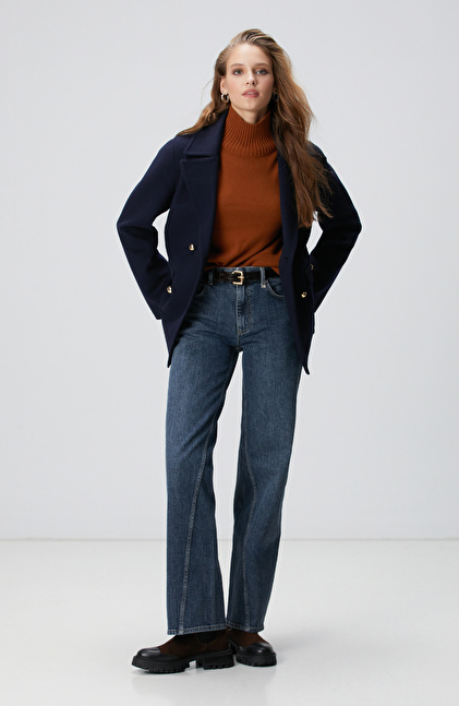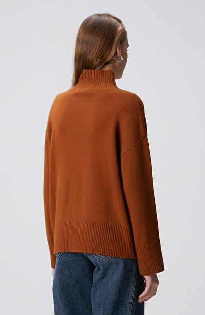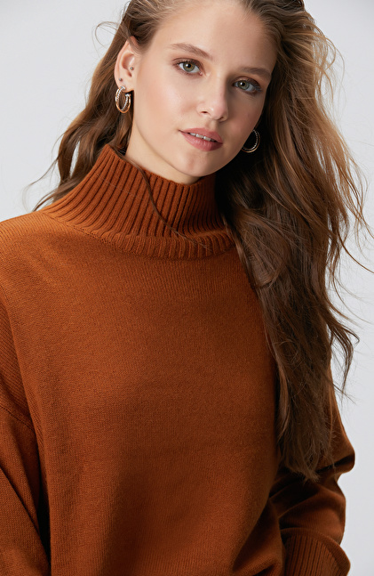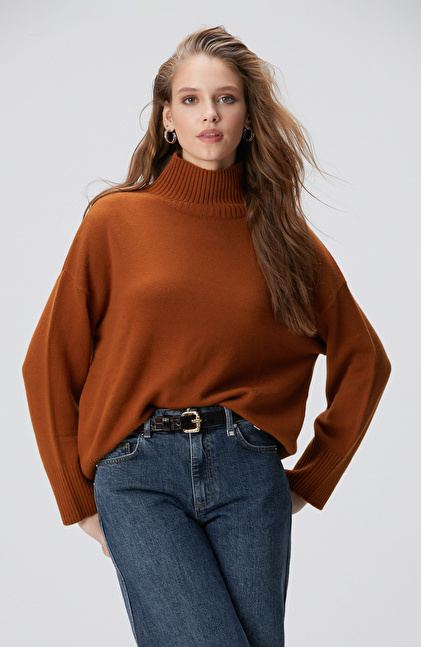Oversize Fit; Balıkçı Yaka; Uzun Kol; Yün Karışımlı; Triko Kazak; Düz Renk; Cepsiz
